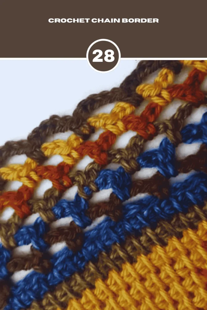 An interesting method to complete your crochet blanket is with the Crossed Double Crochet Border! It creates a colorful, amazing-looking crisscross pattern. To keep it basic, use just one hue; to make it bright and cheery, consider using a variety of colors. Even a yarn with a variety of colors would look fantastic. This border adds a unique touch to your project and is simple to construct.