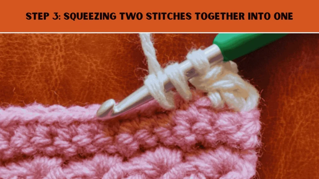 Now, wrap the yarn over your hook and gently pull it through all three loops in one go. Just like that, you’ve turned two stitches into one. This makes your work nice and snug.