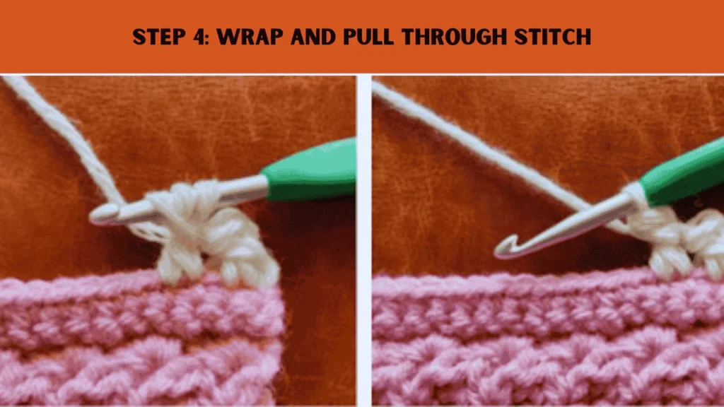 After that, you need to again wrap the yarn around the hook, then pull it through all three loops on your hook to finish the step. This makes a cool new stitch for your crochet project.