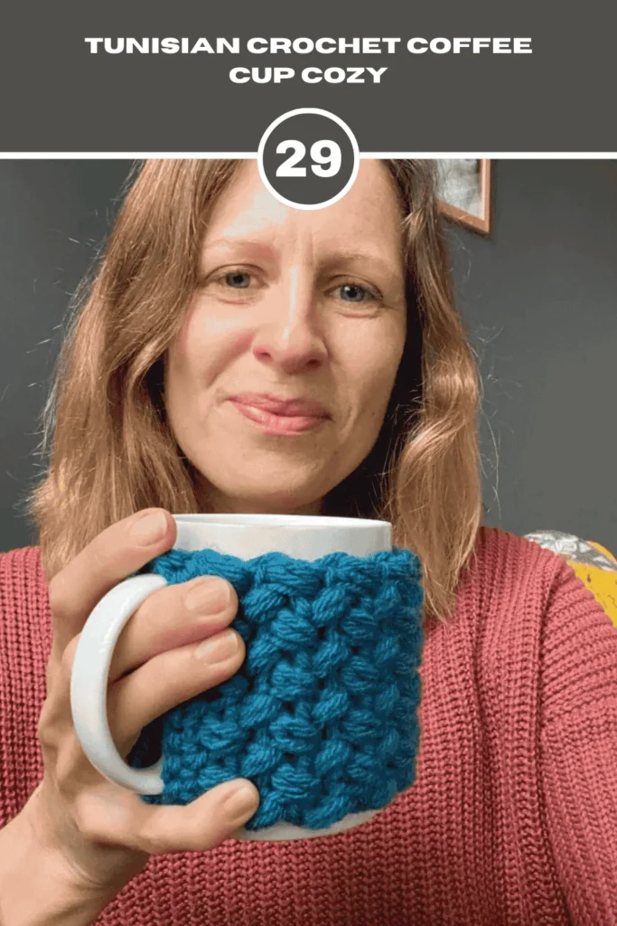 This easy-to-make and very quick beginner project is not only going to keep your hands warm but also elegantly hold your colorful hot cups. The pattern you are about to see uses very basic Tunisian stitches and can be mastered in less than an hour. Make several – they look great in different colours – and give them as gifts or keep one or more for yourself to enjoy your hot drinks comfortably.